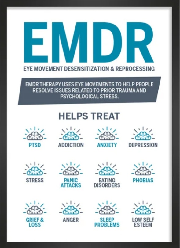 MIND body interventions are proven to bevthe most effective and efficient treat available. Mind Body interventions regularly used: EMDR, HYPNOSIS, TFT, EFT. ACT, MEDITATION, NLP, GUIDED IMAGERY. CBT, DBT. BRAIN SPOTTING