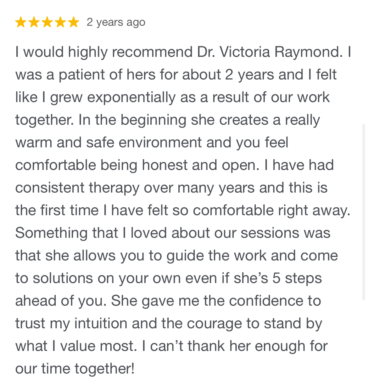 It is so important to find a therapist that you feel comfortable with. There are plenty of highly trained and educated therapists, but research has shown that the most important factor in determining positive outcomes from therapy is the quality of the relationship between the client and their therapist. Take advantage of complimentary consultation calls to make sure you?re choosing a therapist who makes you feel heard and understood.